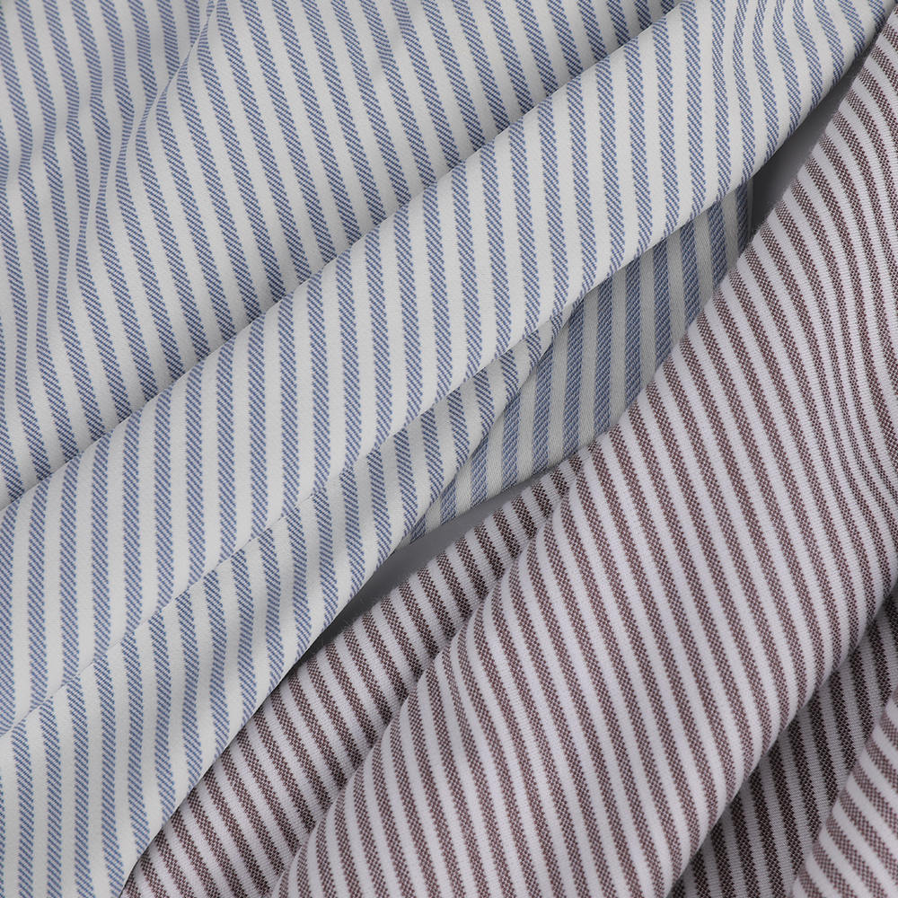 Il tessuto a strisce morbido e adatto alla pelle di lana adotta la tecnologia di tessitura di precisione e incorpora un design a strisce che è sia classico che alla moda. Il motivo a strisce mostra una bellezza visiva a basso e avanzata attraverso sottili cambiamenti di colore, che non solo aggiunge un senso di stratificazione visiva, ma migliora anche lo stile e il gusto della camicia. Il design a strisce ha un effetto di stretching visivo, che aiuta a modellare una figura snella e verticale. In termini di comfort, questo tessuto ha subito più processi di ammorbidimento per rimuovere efficacemente il prurito della lana e conservare le sue caratteristiche calde e leggere. Il tessuto di lana appositamente trattato può portare un'esperienza di usura confortevole e naturale quando entra a diretta contatto con la pelle, che è adatto a persone con pelle sensibile e a coloro che perseguono un'esperienza di usura di alta qualità.