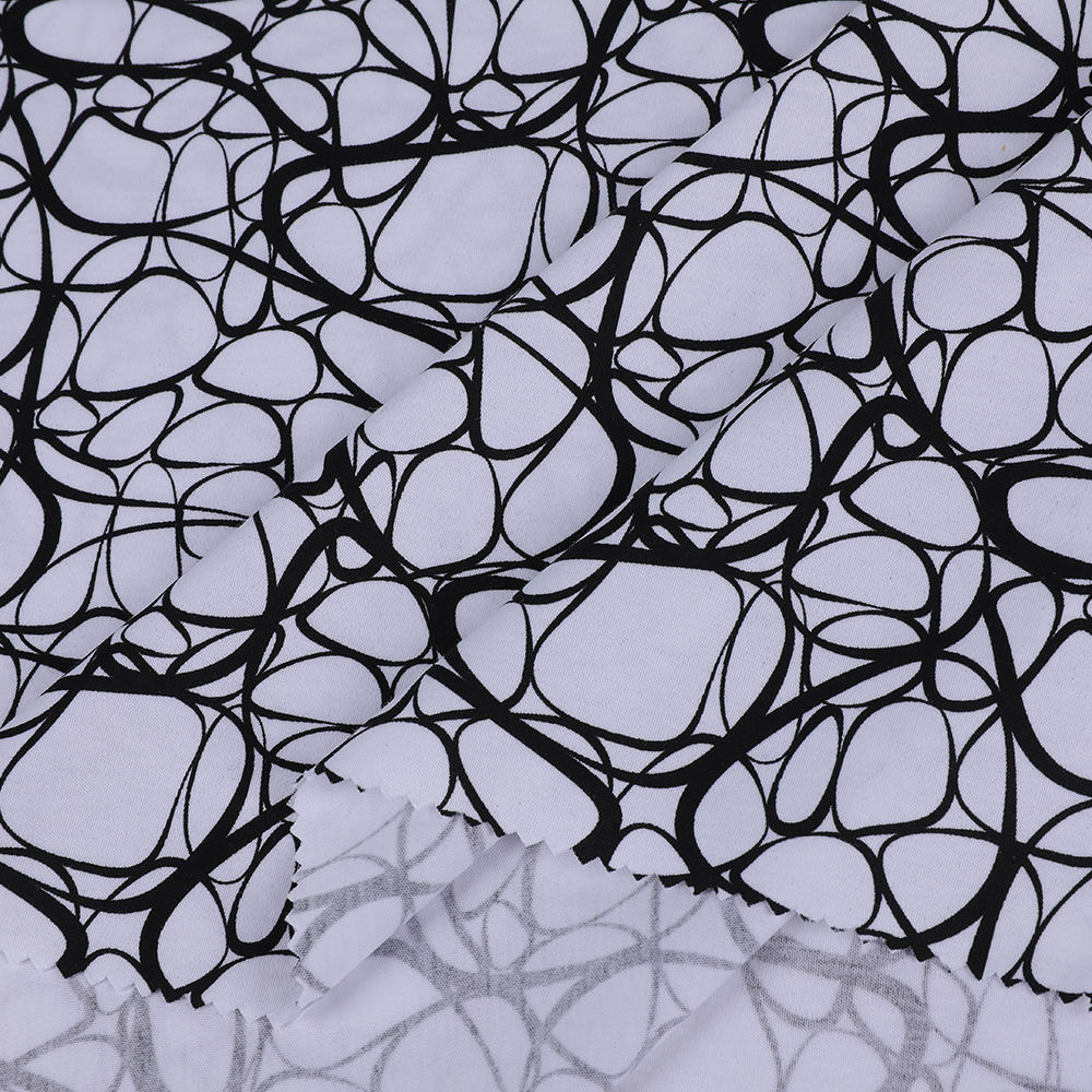 Stampa digitale La tessuto di cotone ad interblocco a maglia a maglia adatto per le donne adotta la tecnologia a maglieria a doppia faccia e entrambi i lati presentano una consistenza sottile e uniforme, garantendo l'aspetto di alta qualità dell'abbigliamento. Allo stesso tempo, il componente di cotone offre al tessuto un buon assorbimento di umidità, traspirabilità e facilittà della pelle, che possono mantenere a proprio agio chi lo indossa anche in ambienti ad alta temperatura. In termini di motivo e colore, questo tessuto adotta una tecnologia di stampa digitale avanzata. Questa tecnologia utilizza ugelli ad alta precisione per stampare accuratamente motivi squisiti sulla superficie del tessuto, con colori vivaci e dettagli di pattern, che migliorano efficacemente il fascino visivo degli indumenti. Inoltre, la tecnologia di stampa digitale garantisce anche la durata e la stabilità del modello. Anche dopo più lavaggi, il motivo rimane luminoso e non si sbiadisce o si deforma facilmente. In termini di proprietà fisiche, il processo a maglia fornisce al tessuto elasticità moderata, che può facilmente adattarsi a varie curve del corpo e garantire comfort e adattamento quando si indossa. Allo stesso tempo, il tessuto ha anche una buona resistenza alle rughe e resistenza all'usura, non è facile da un pollo o deformazione e prolunga la durata del servizio. Questo tessuto è adatto a una varietà di stili di abbigliamento da donna, come abiti, magliette, top, ecc., Che possono soddisfare le esigenze di usura delle diverse occasioni. Che si tratti del tempo libero quotidiano, del pendolarismo o della partecipazione alle feste ed eventi, può mostrare l'elegante temperamento e il gusto della moda. .