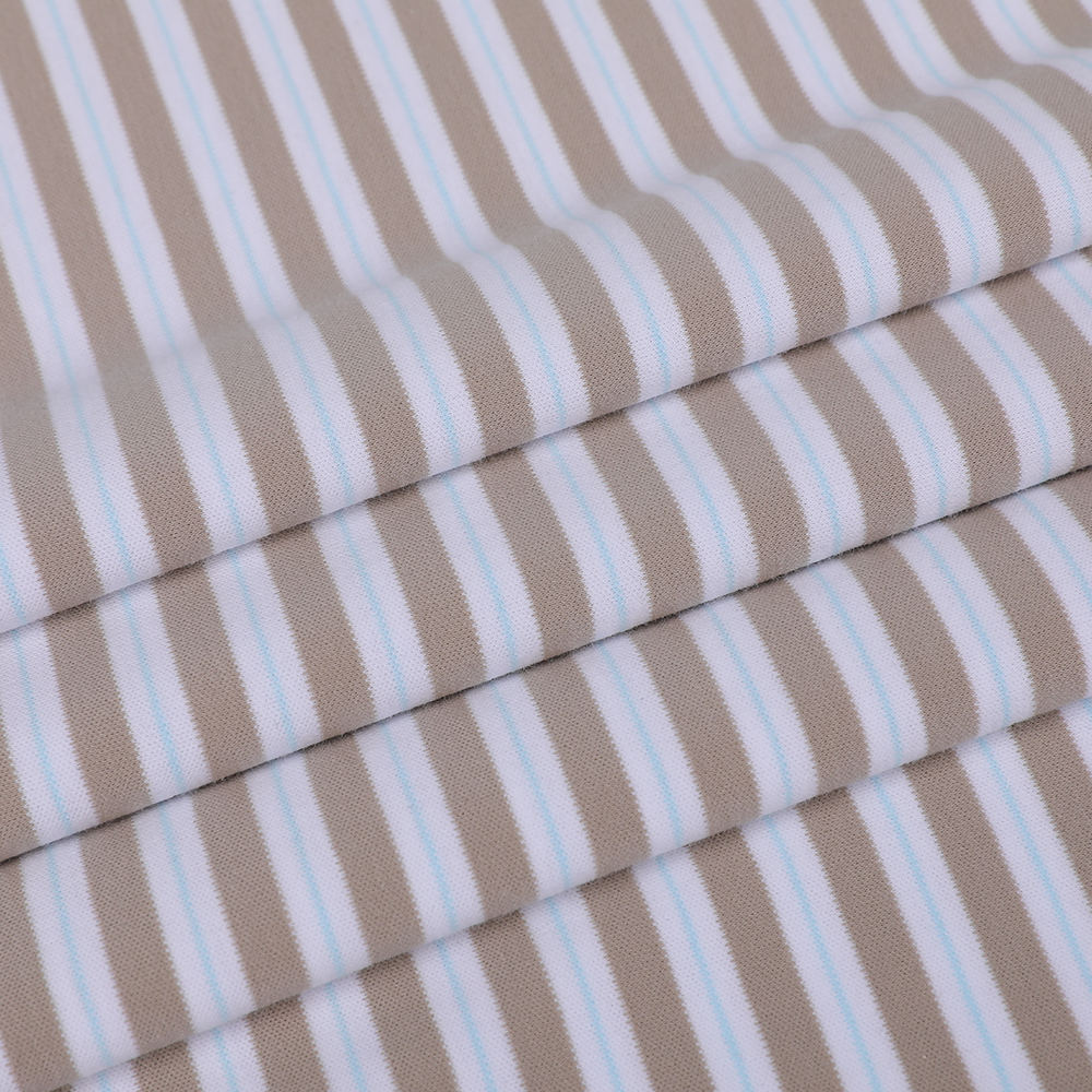 La materia prima principale del tessuto ad interblocco di cotone a strisce liquido a strisce liquido a strisce liquido traspirato traspirato è selezionata in fibra di cotone naturale. Attraverso un preciso processo tinto di filo, il motivo a strisce è fine e resistente. La tecnologia di tessitura tinta garantisce la solidità del colore. Anche in condizioni di illuminazione a lungo termine o di lavaggio a lungo termine, il colore del tessuto rimane luminoso e stabile e non è facile da sbiadire. Il processo di base di questo tessuto è il trattamento con ammoniaca liquida. La tecnologia di finitura dell'ammoniaca liquida è un metodo efficiente di modifica delle fibre. L'ottimizzazione della struttura interna della fibra migliora significativamente la morbidezza e la traspirabilità del tessuto. Questo processo di trattamento, senza danneggiare le caratteristiche originali della fibra di cotone, offre al tessuto una sensazione più delicata e una migliore traspirabilità, regola efficacemente la temperatura corporea, riduce la ritenzione del sudore e garantisce che chi lo indossa possa mantenere la loro salute anche in buone condizioni climatiche. Rimani asciutto e comodo. Inoltre, il design a strisce non solo migliora la bellezza visiva, ma fornisce anche scelte diversificate per l'abbigliamento domestico, l'abbigliamento per bambini e la lettiera attraverso il colore intelligente e la corrispondenza della linea. Il suo aspetto squisito combinato con una buona praticità offre a questo prodotto un'ampia applicabilità sul mercato.