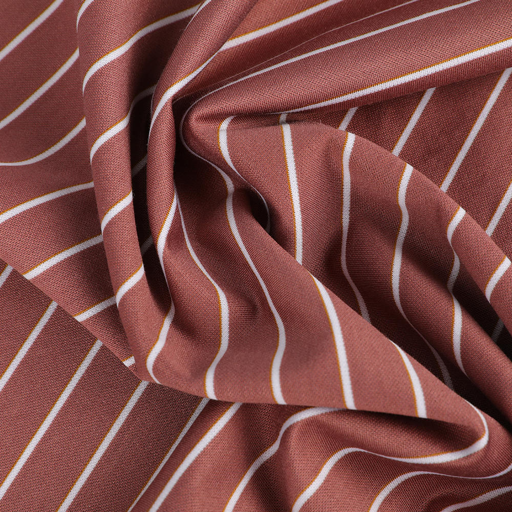 Il tessuto a camicia di cotone di seta confortevole a strisce utilizza i vantaggi naturali delle fibre di seta e cotone per formare una struttura in fibra unica, che non solo mantiene il tocco lucido e delicato di seta, ma combina anche la traspirabilità e la durata del cotone, migliorando efficacemente il comfort e la capacità di adattarsi ai cambiamenti multi-stagione. La sua buona prestazione di assorbimento e sudore dell'umidità può regolare efficacemente il microclima della superficie corporea, mantenere chi lo indossa asciutto e confortevole e mantenere il corpo fresco anche in ambienti ad alta temperatura.